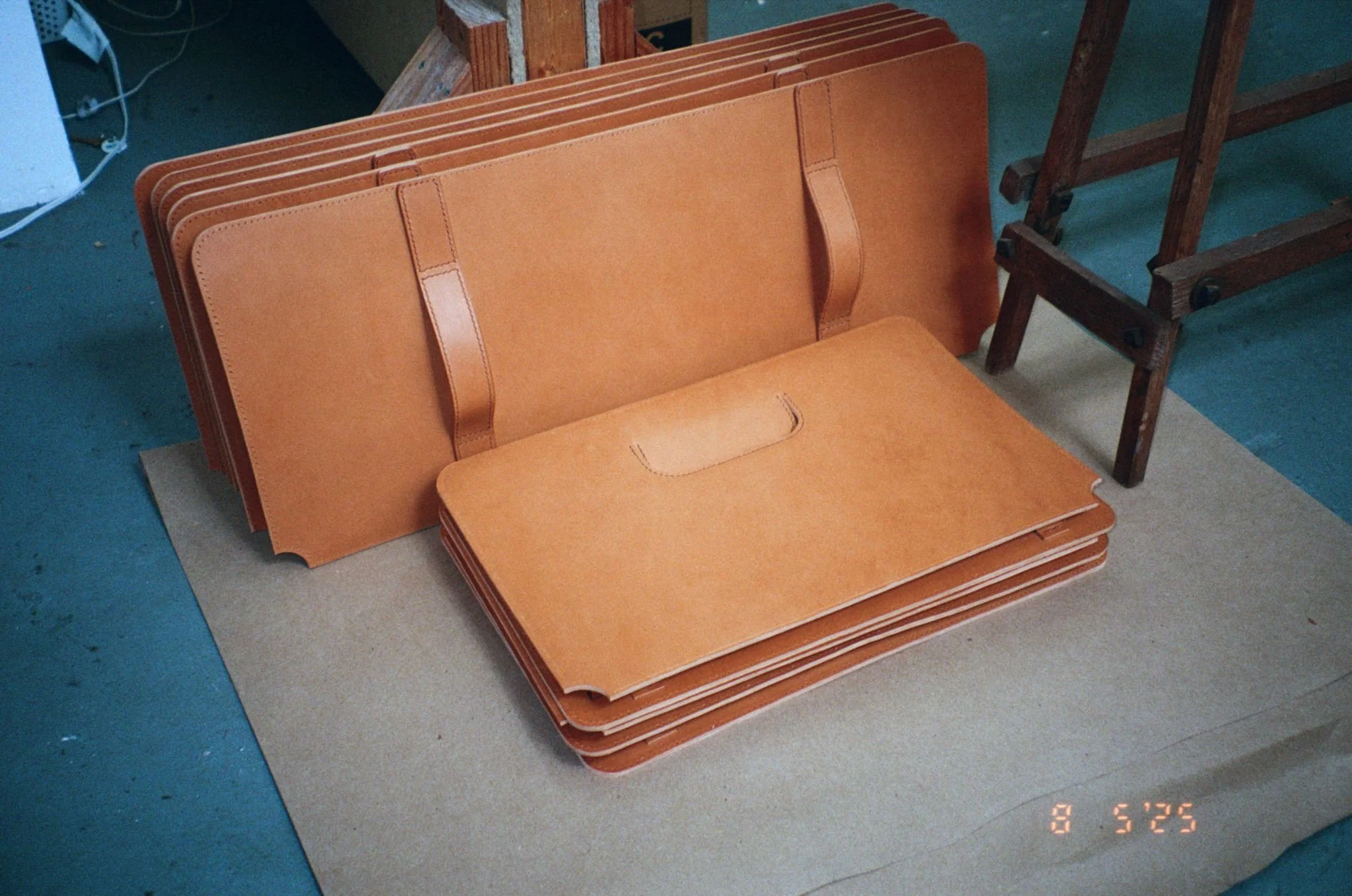 Custom Leather Storage Bins. Hand-stitched with waxed linen thread.